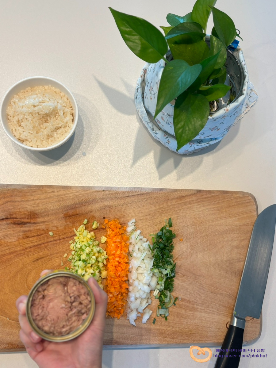 저도 죽을 참 좋아하고요,뚜아자매가 아플 때 죽 종류를 종종 만들어주곤 하는데요. 이번 레시피는 찬밥으로 10분 안에 뚝딱 완성할 수 있어서 아침죽, 해장죽으로도 너무 좋은 참치야채죽이에요
