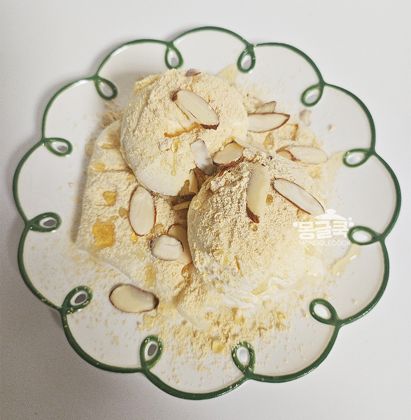 구운 절편 위에 아이스크림을 한 스쿱 올리고