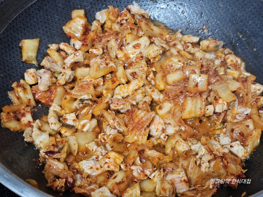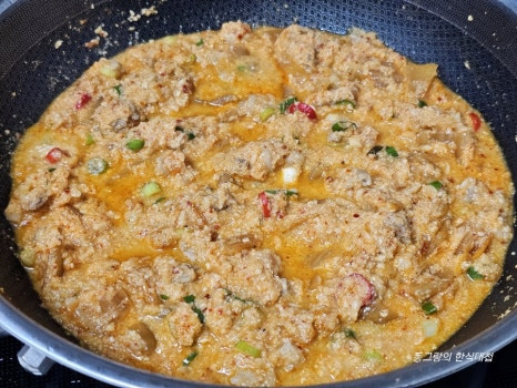 비지에 돼지고기와 김치넣고 비지찌개 끓였어요