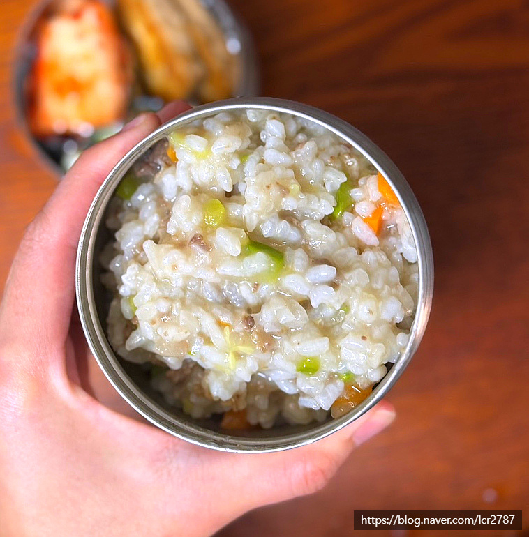 소화 잘 되고, 속 따뜻하게 감싸주는 음식으로 보온도시락 죽통 가득 채웠습니다.