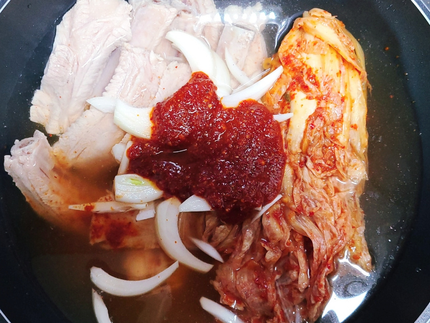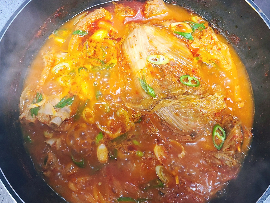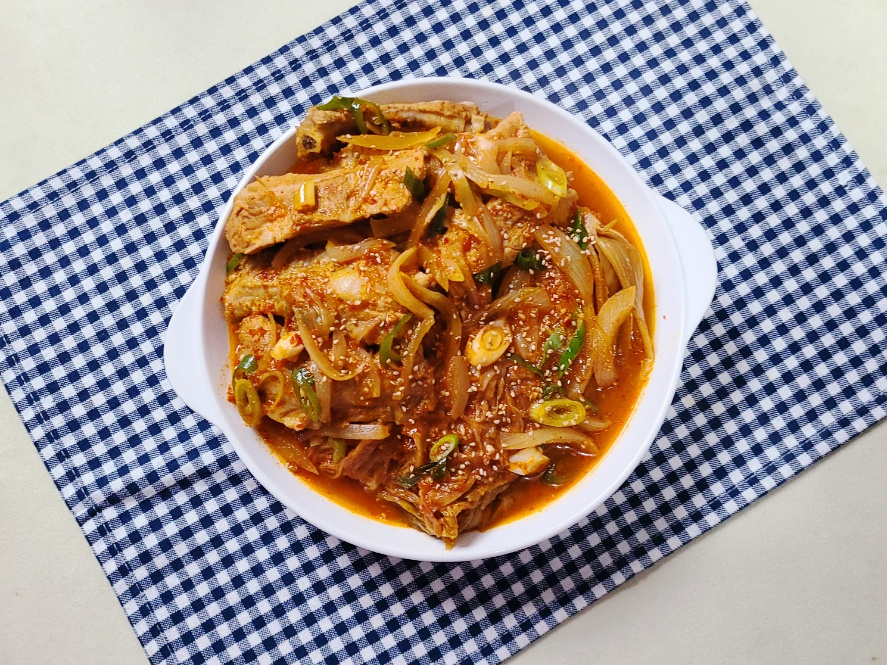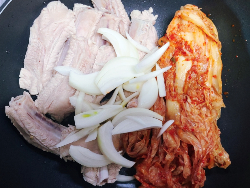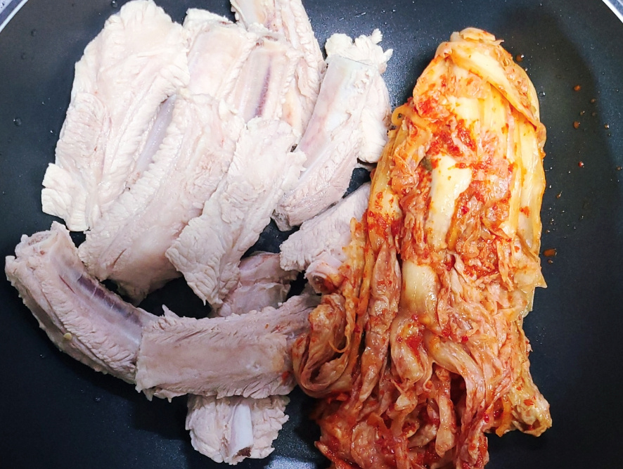 (얼핏보면 돼지고기 양이 적은거 같지만 묵은지와 함께 끓이면 양이 넉넉하여 둘이서도 충분히 먹을 수 있어요)
