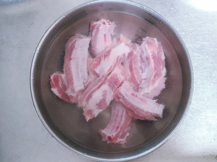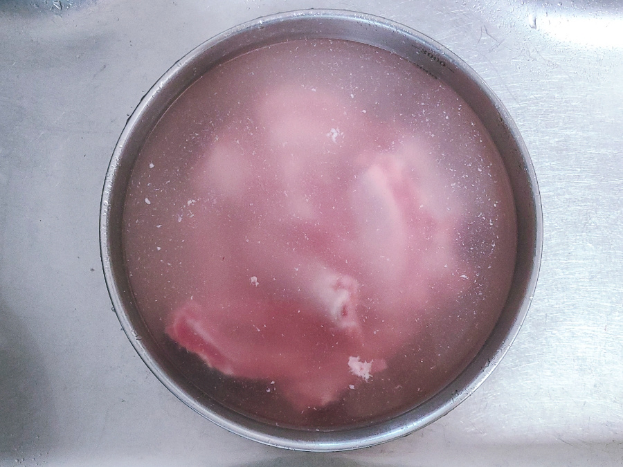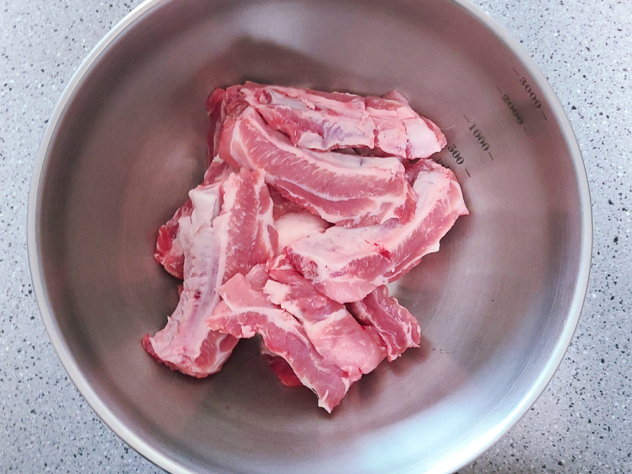 (냉장된 등갈비 경우에는 물에 담가서 핏물을 빼주지 않아도 되지만, 냉동이나 수입산 돼지 등갈비 경우에는 물에 담가서 30분~1시간 정도 핏물을 뺀 다음에 요리를 하는게 좋아요)