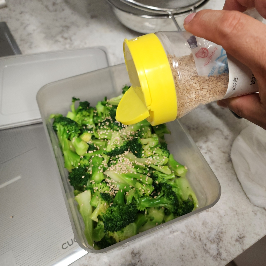 건져낸 브로콜리는 소쿠리에 넣고 물이 빠지고 식을 수 있게 해주세요