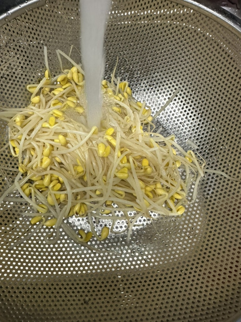 콩나물을 지저분한 부분이 없는지 눈으로 확인하고 흐르는 물에 깨끗하게 세척해 주세요. 잔뿌리나 껍질이 붙어 있다면 제거해 주는 것이 더 깔끔합니다.
