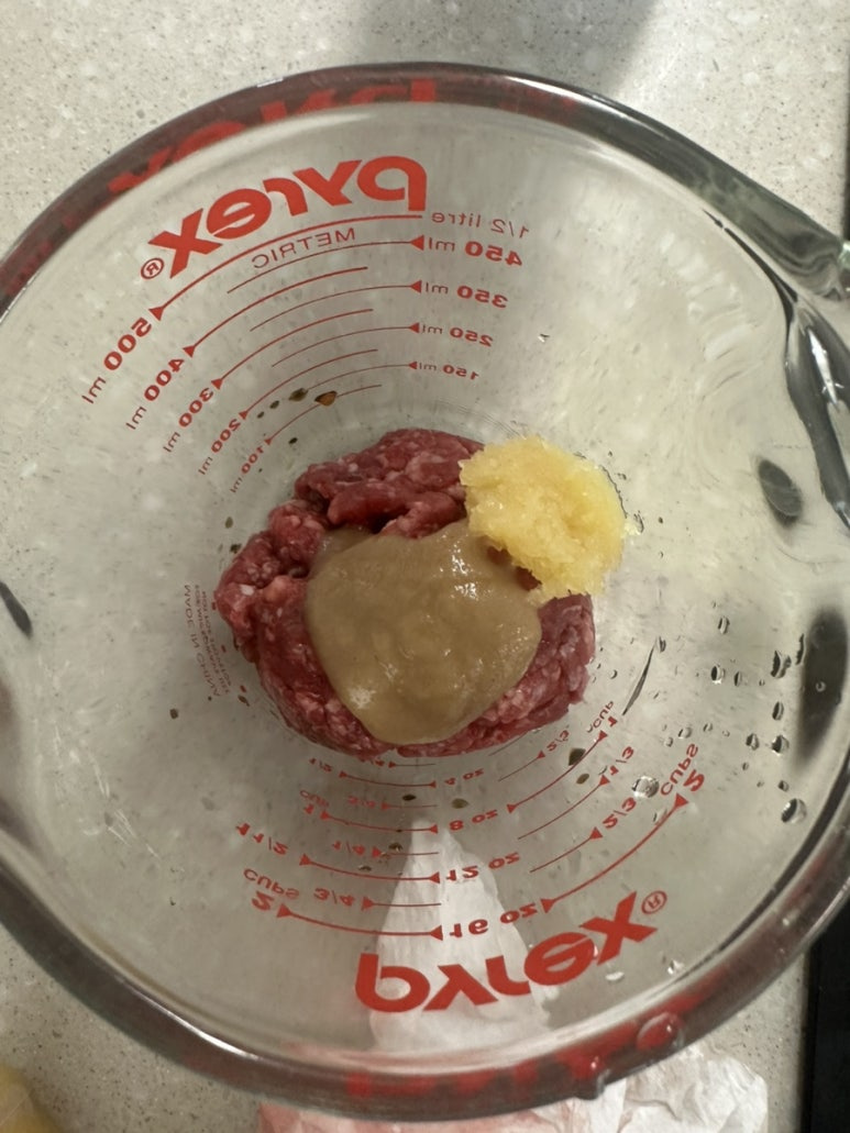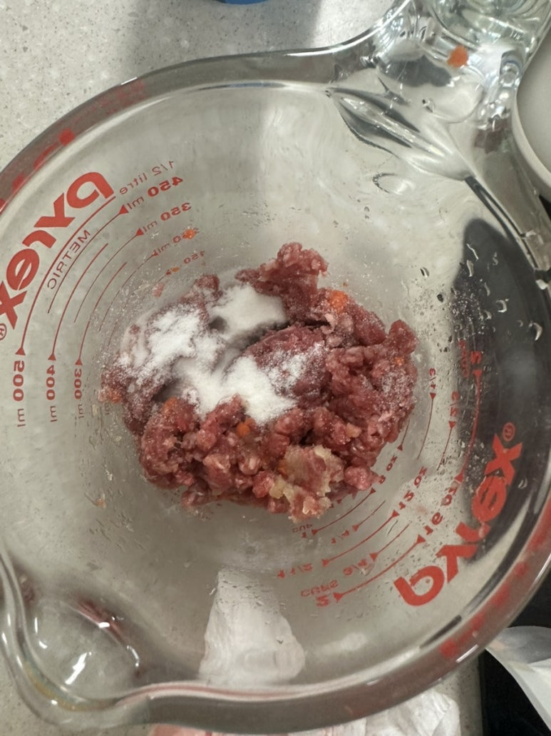 1. 큰 볼에 다진 소고기를 넣습니다.