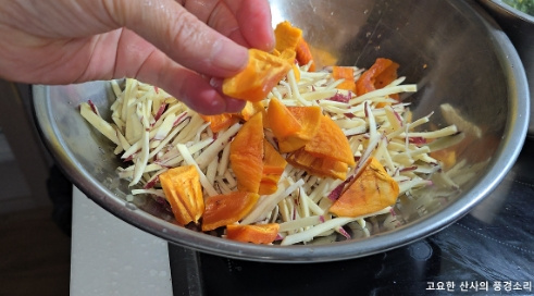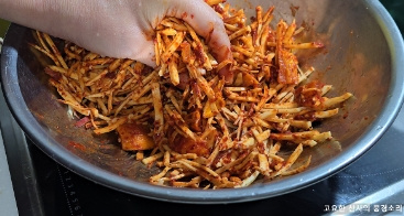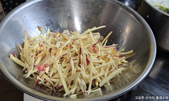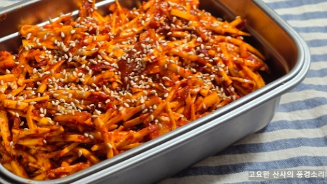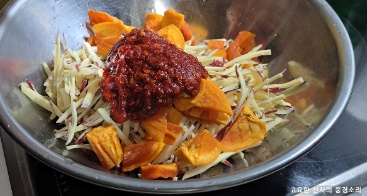 최근 방송 편스토랑에서 가수 김재중이 직원들을 위해 만든 ‘고구마생채’가 화제가 되었죠. 아삭한 고구마와 달콤한 감말랭이의 조합이 색다른 매력을 보여주었어요. 오늘은 김재중표 고구마생채를 그대로 따라 해보고, 남은 생채로 양푼이 비빔밥까지 만들어봤습니다.