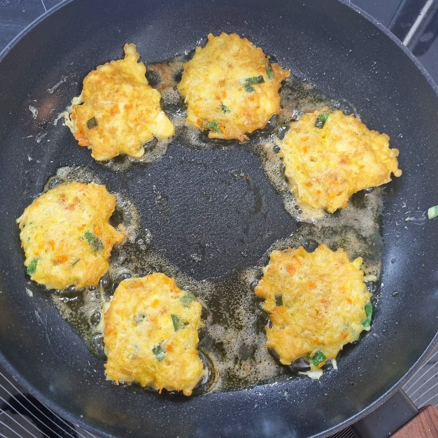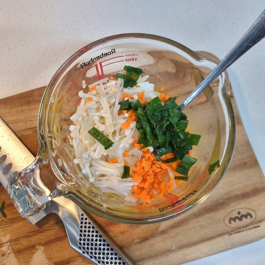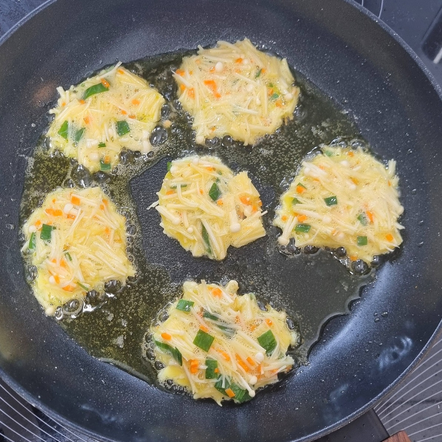 남은 버섯이 있어서 팽이버섯 야채전 만들었어요