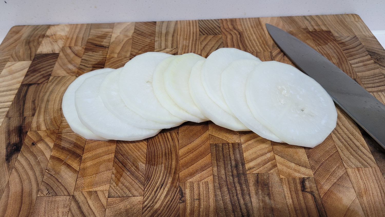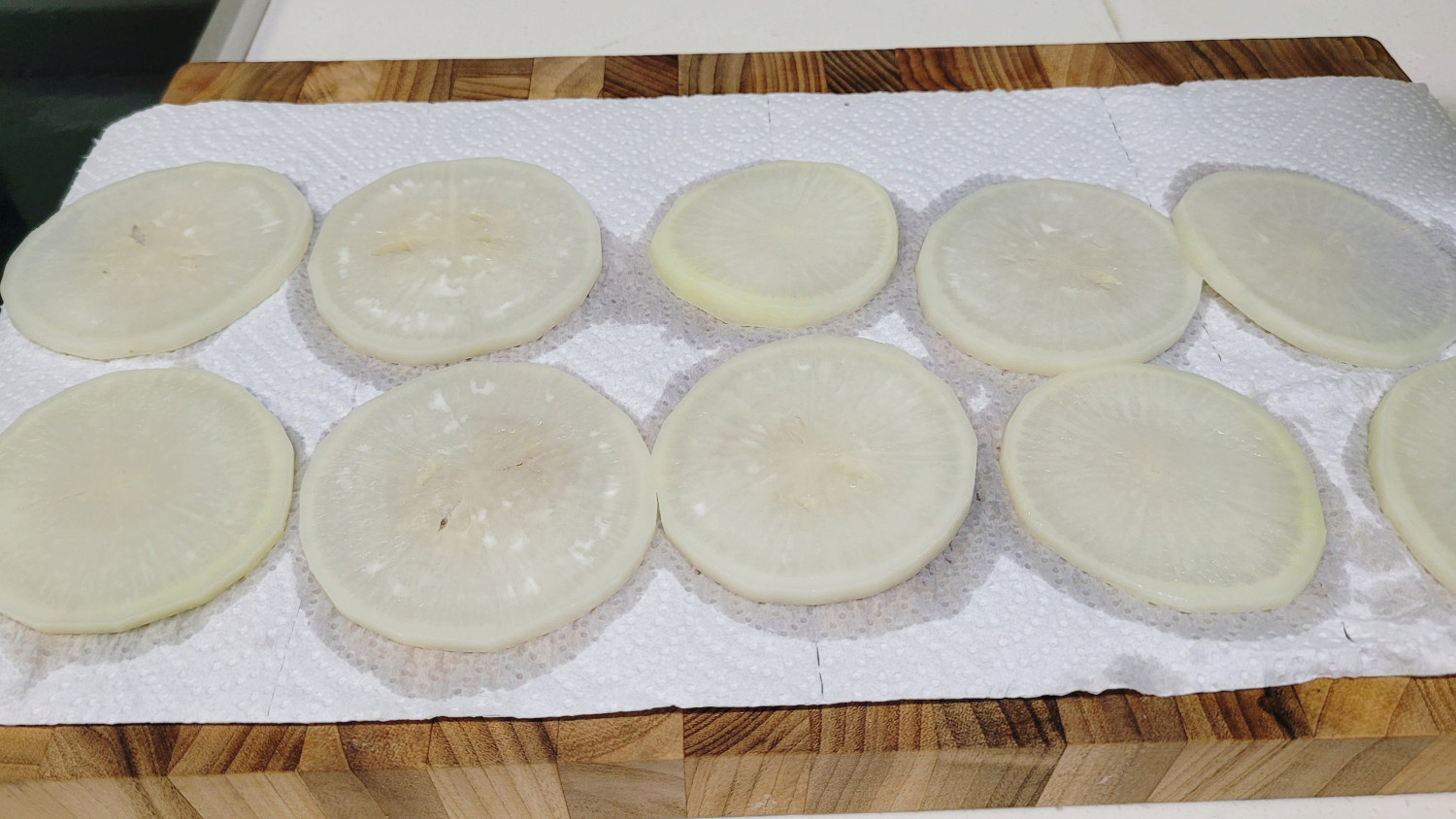 슬라이스한 무는 생각보다 잘 안익어서 데쳐주거나 소금을 살짝 뿌린후 전자레인지 등에 한번 살짝 익혀서 사용합니다