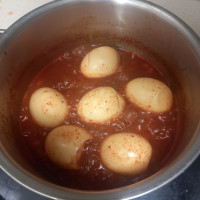 계란은 실온에 미리 꺼내 두었다가 물이 끓으면 계란을 넣고 8분 정도 삶아 주세요. 계란을 넣을때 그냥 넣지 말고 체에 받쳐서 넣고 체로 이리저리 골고루 저어 주세요. 8분 정도 삶으면 찬물에 담가서 계란 껍질을 까 주세요!