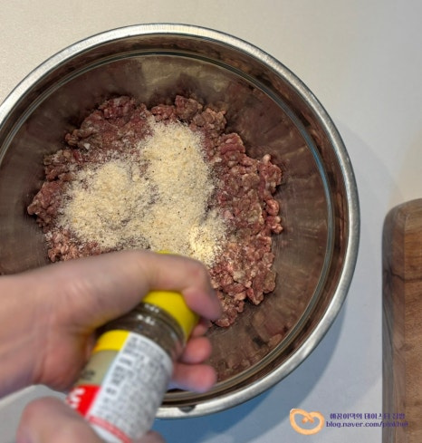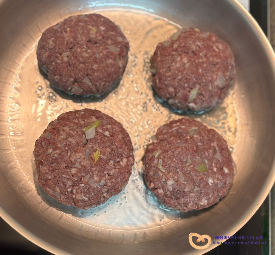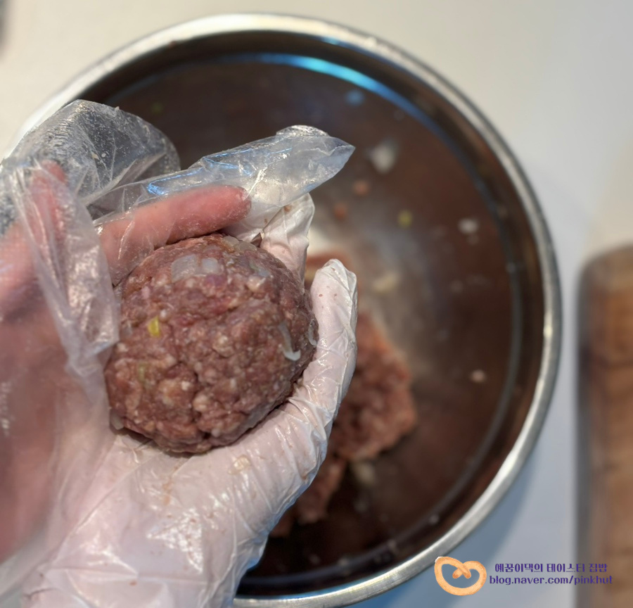 고기는 보통 소고기, 돼지고기 섞어 만드는데 이번에는 100% 소고기만 넣어서 풍미를 살려봤어요. 고소하고 너무 맛있더라고요 ><