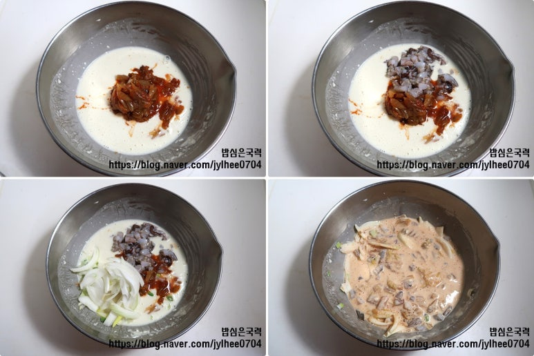 넣어 감칠맛 제대로 살아있는 오징어 김치전 레시피를 소개합니다.