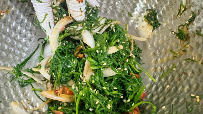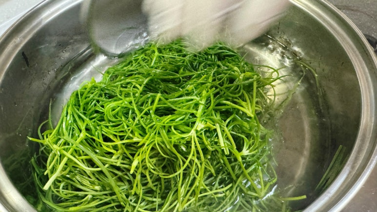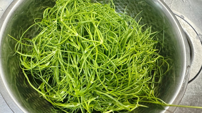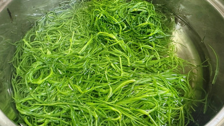 오늘은 겨울에 나오는 신선한 세발나물로 만드는 초간단 된장무침 레시피를 소개할게요.