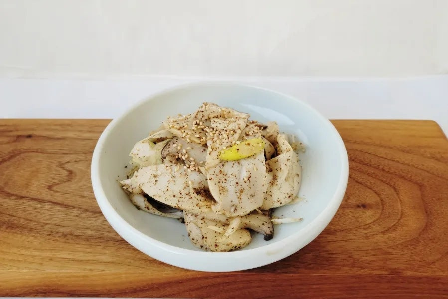 새송이버섯(중간크기) 2~3개 , 대파 1/4대 , 진간장 1T , 참기름 1T , 들깨가루 1~2T , 소금 약간 , 통깨 약간 , 육수용(선택) , 다시마 1조각 , 물 1/2컵