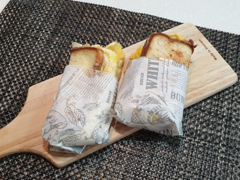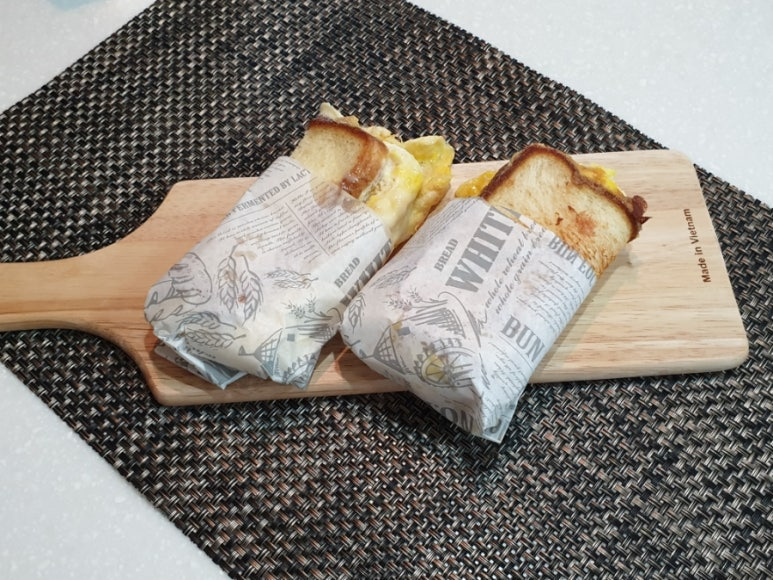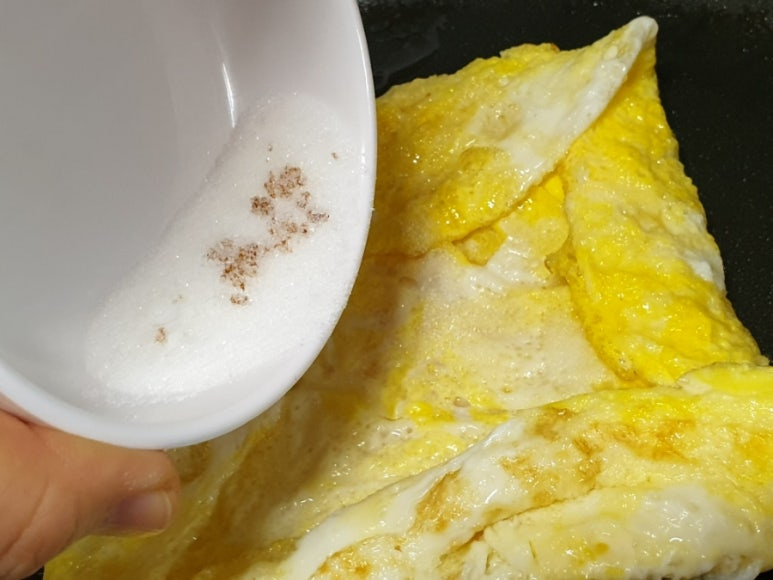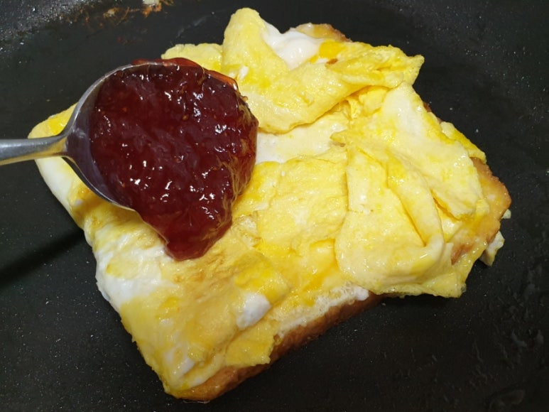 식빵 2조각 , 계란 2개 , 치즈 2개 , 설탕 , 잼