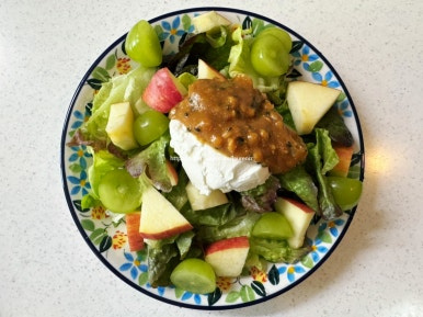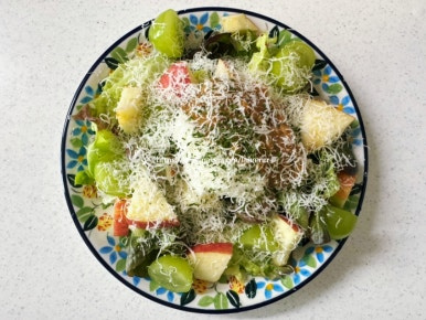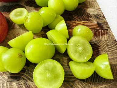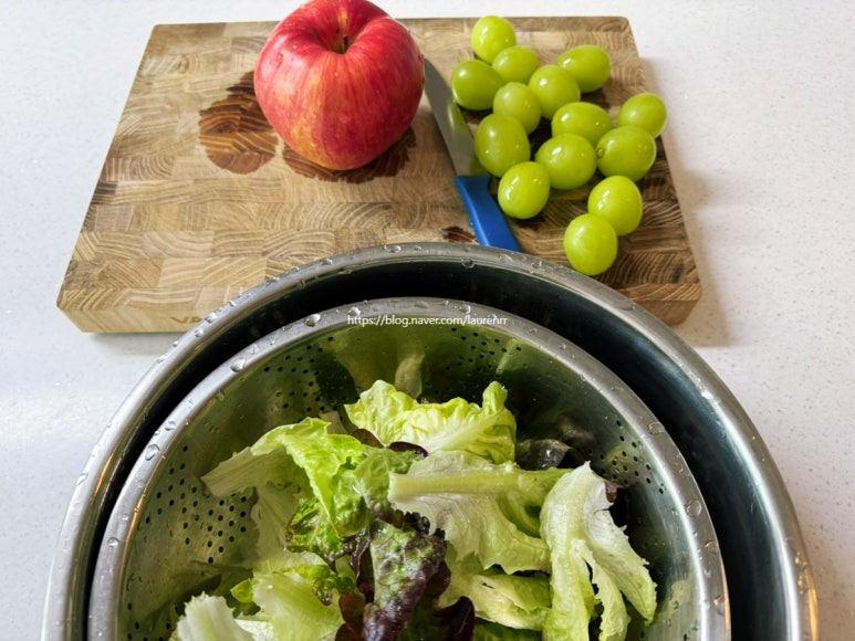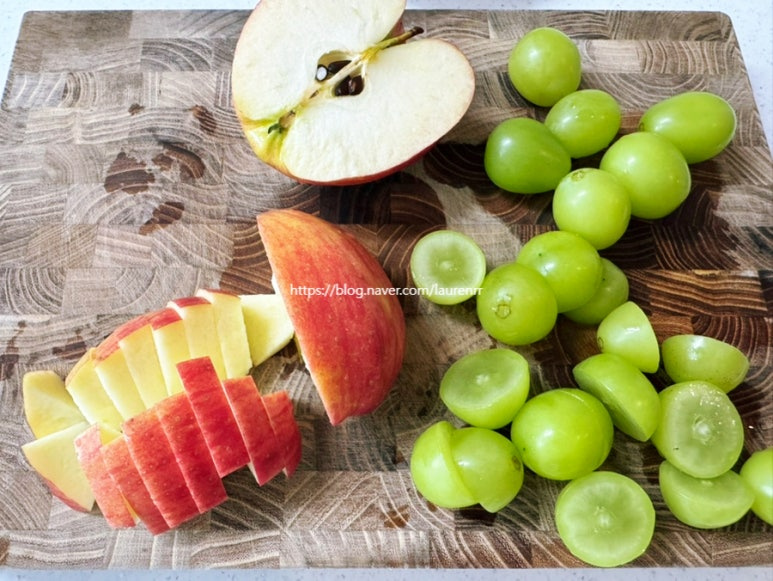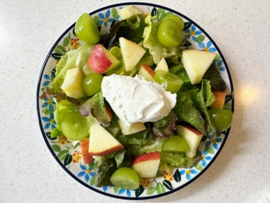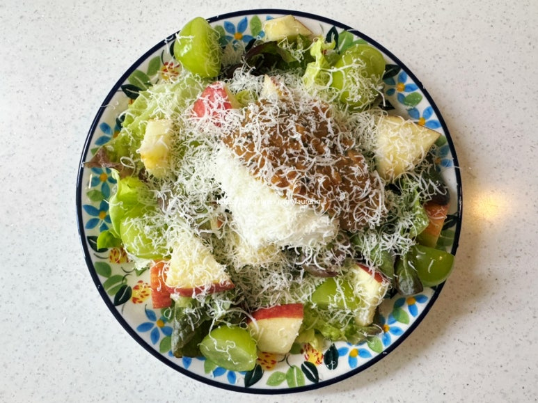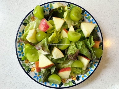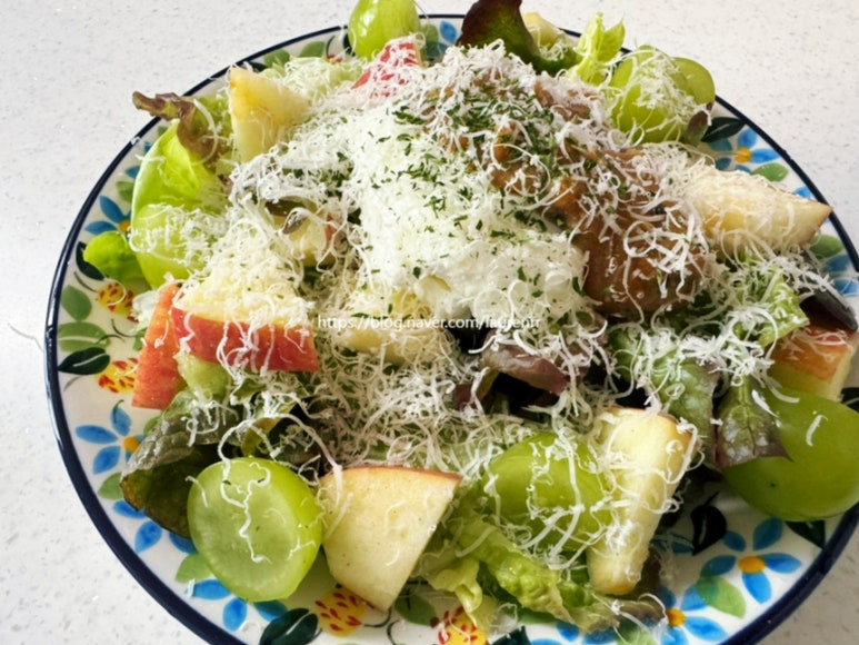 유러피언 샐러드 위에 사과와 샤인머스켓
