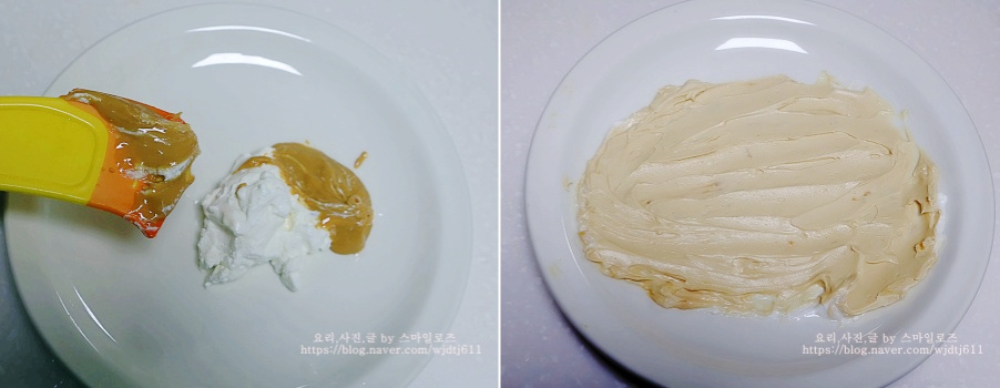그릭요거트와 땅콩버터를 섞은 후 올리브유 넉넉히 뿌려 먹으면