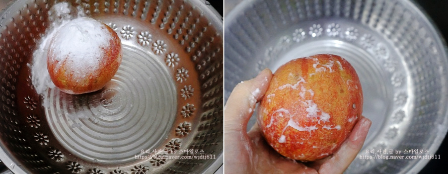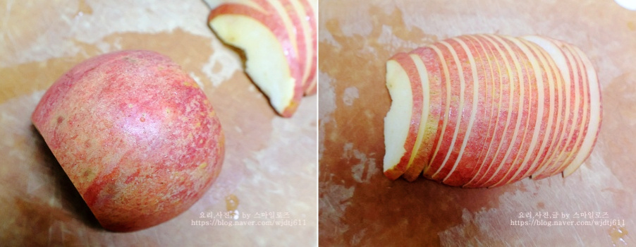 평상시 사과 1/4쪽 겨우 먹는데 이렇게 사과 1/2개를 먹을 수 있어 좋아요