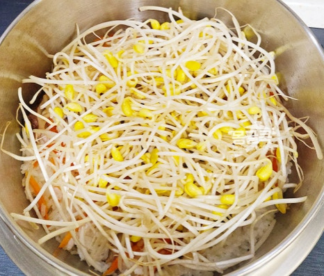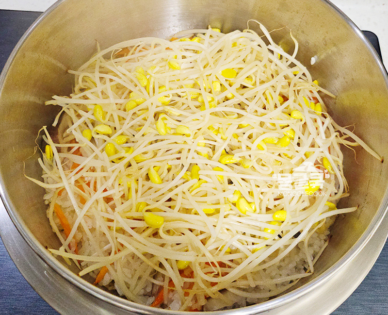 뚜껑을 열고 콩나물을 가장 위에 고르게 올려주세요.