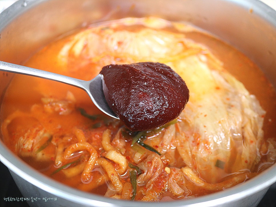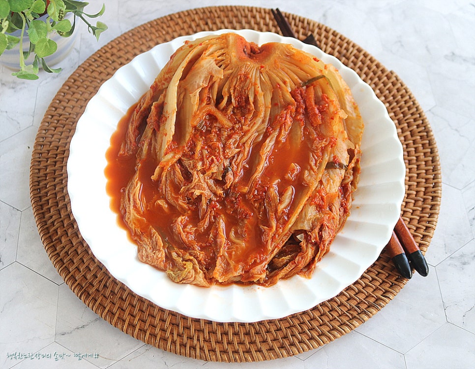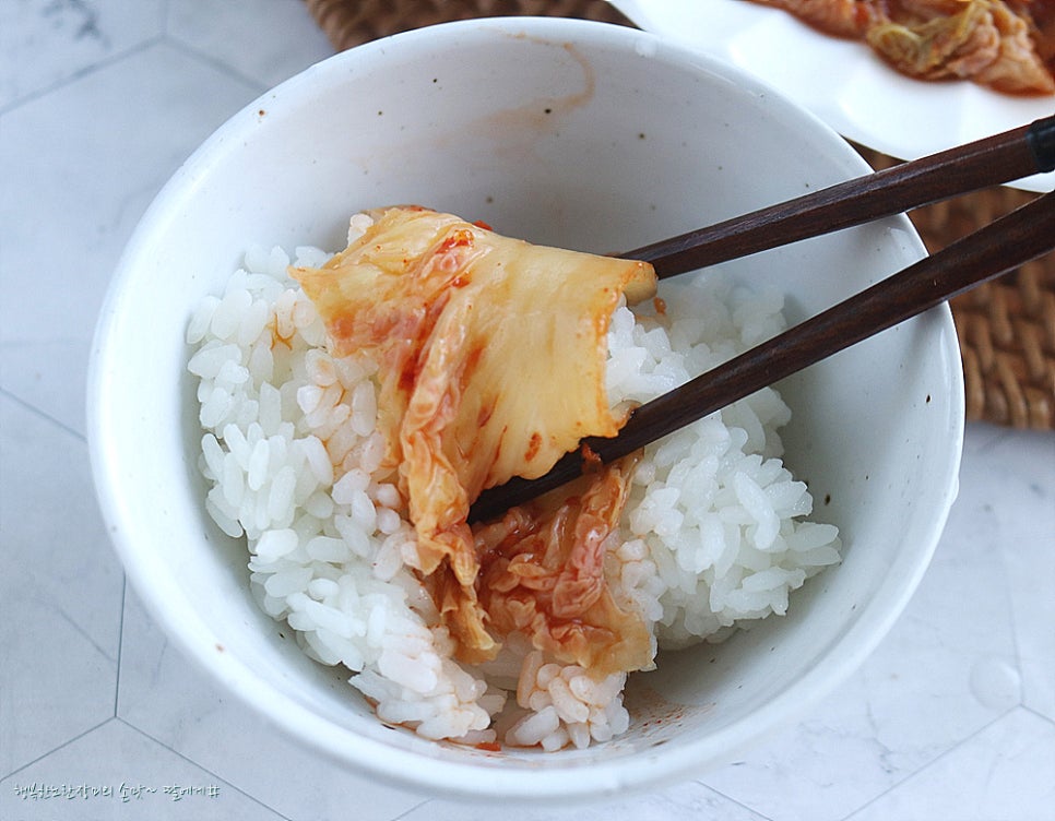 새로꺼낸 배추김치여야 정말 맛나답니다.