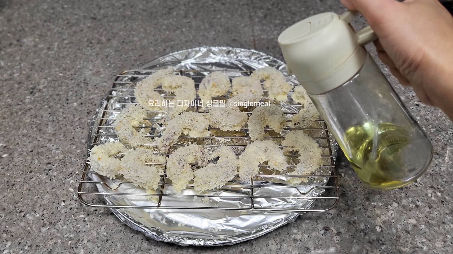 트레이에 올리고 앞뒤고 고르게 식용유를 뿌리고 오븐에서 구워냅니다.