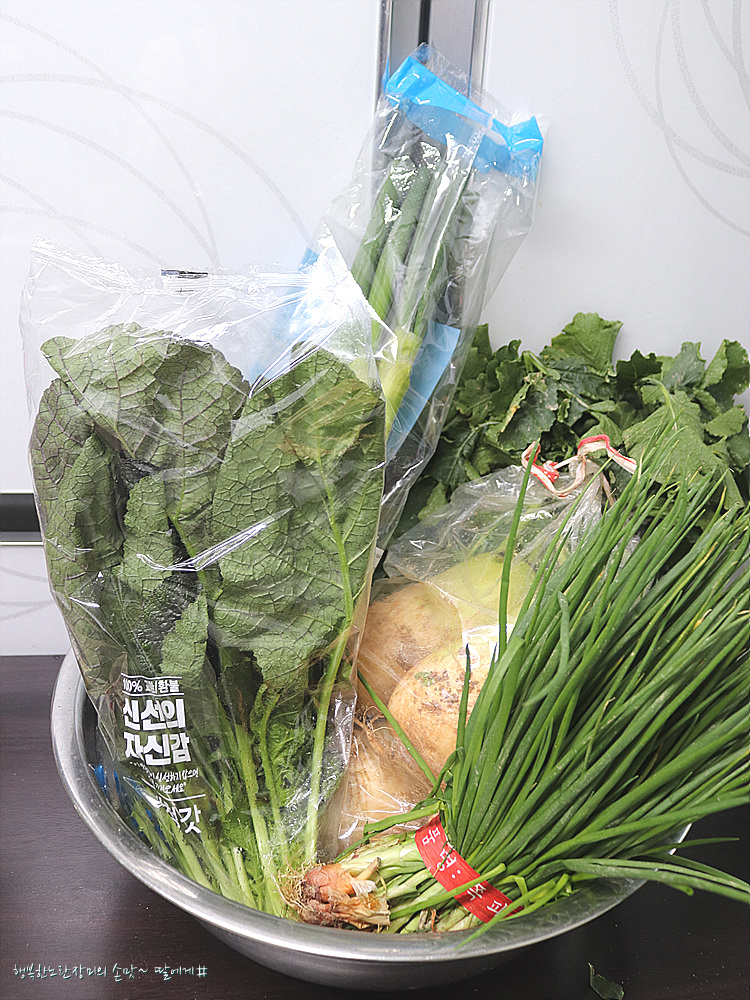 큰 다발무 3개(2.5kg),대파 흰부분2대,쪽파 400g, 홍갓300g
