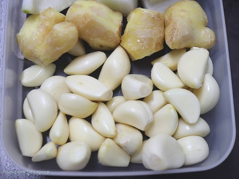 양파 작은거1개, 무 1개,마늘 두컵, 생강2/3컵