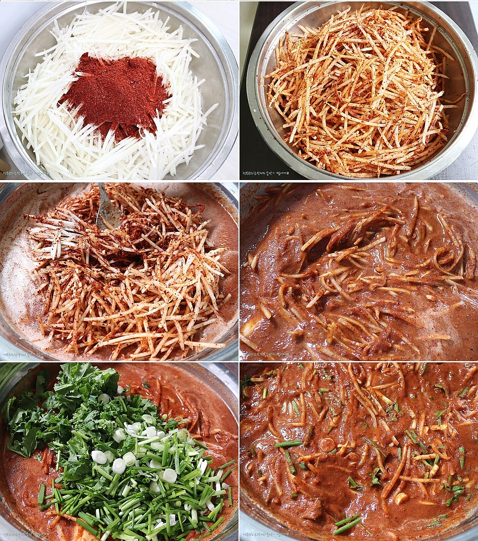 찹쌀죽,무,양파,새우젓,액젓,마늘,생강 다넣고 갈아요~