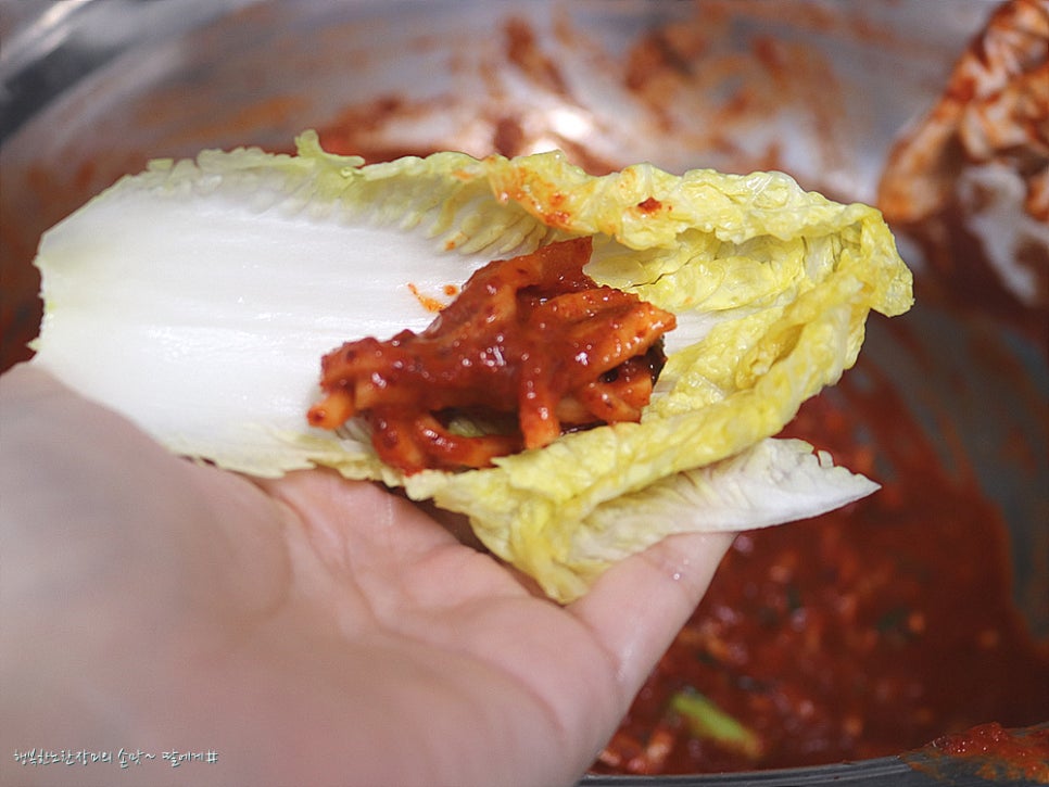 절임배추 하나 띠어서 김장양념 속 넣고 먹어야죠~