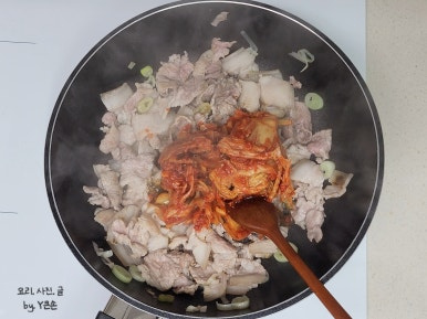 앞다리살의 촉촉한 육즙과 신김치의 산미가 만나면 단짠 매콤한 밥도둑 반찬이 완성돼요.