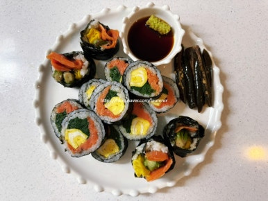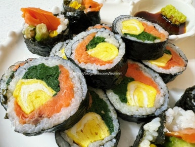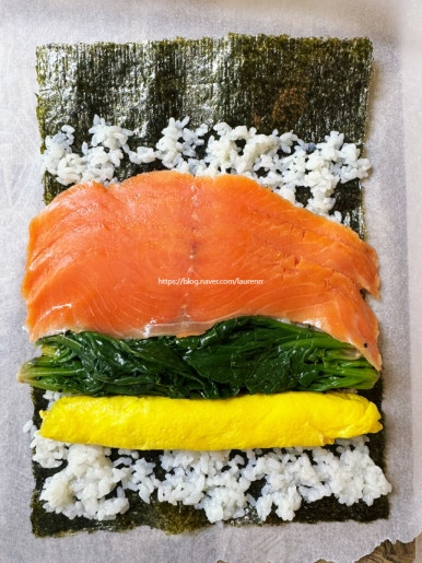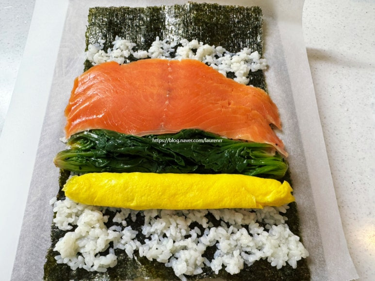 계란, 시금치무침, 훈제연어를 듬뿍 넣은