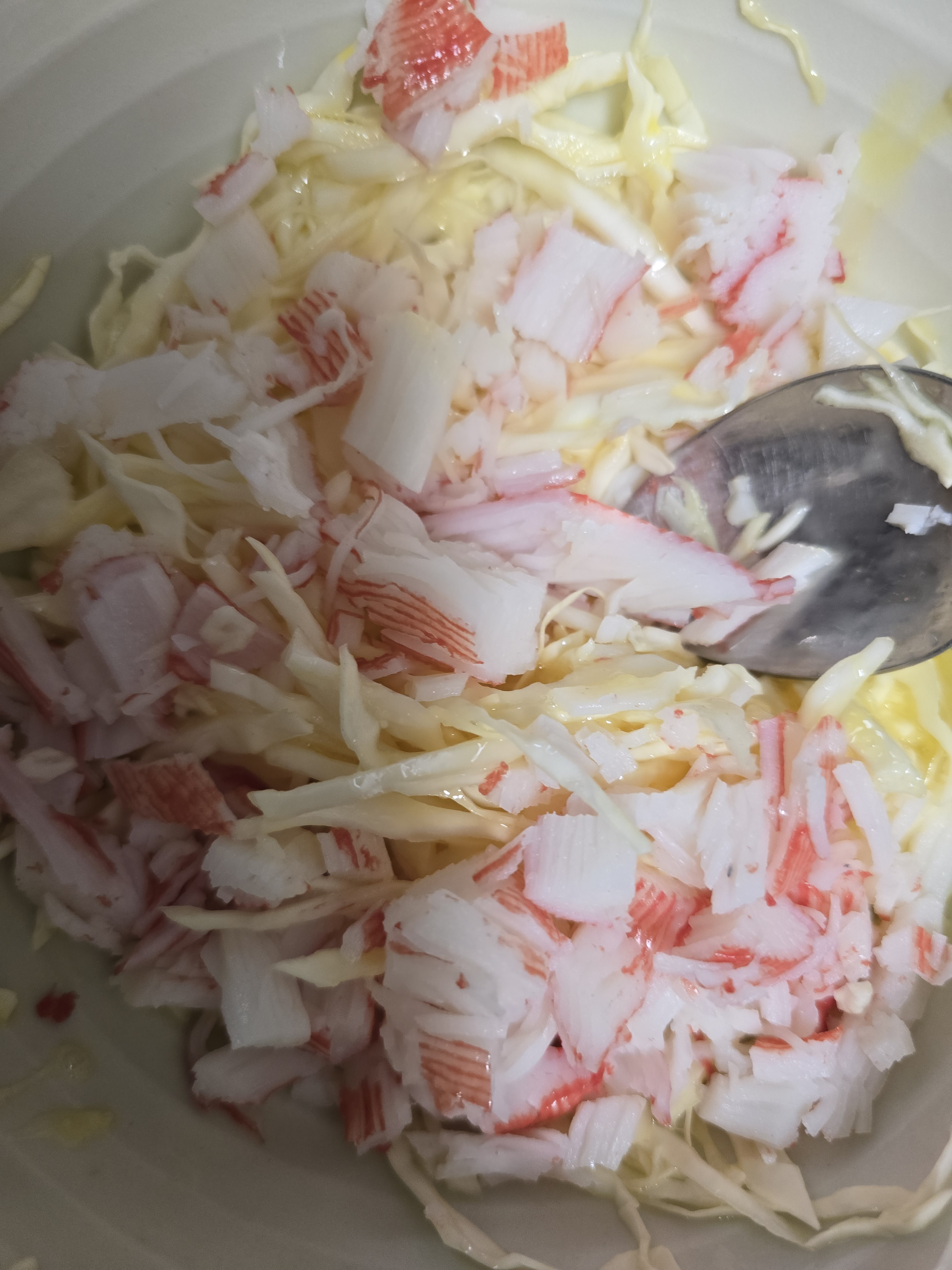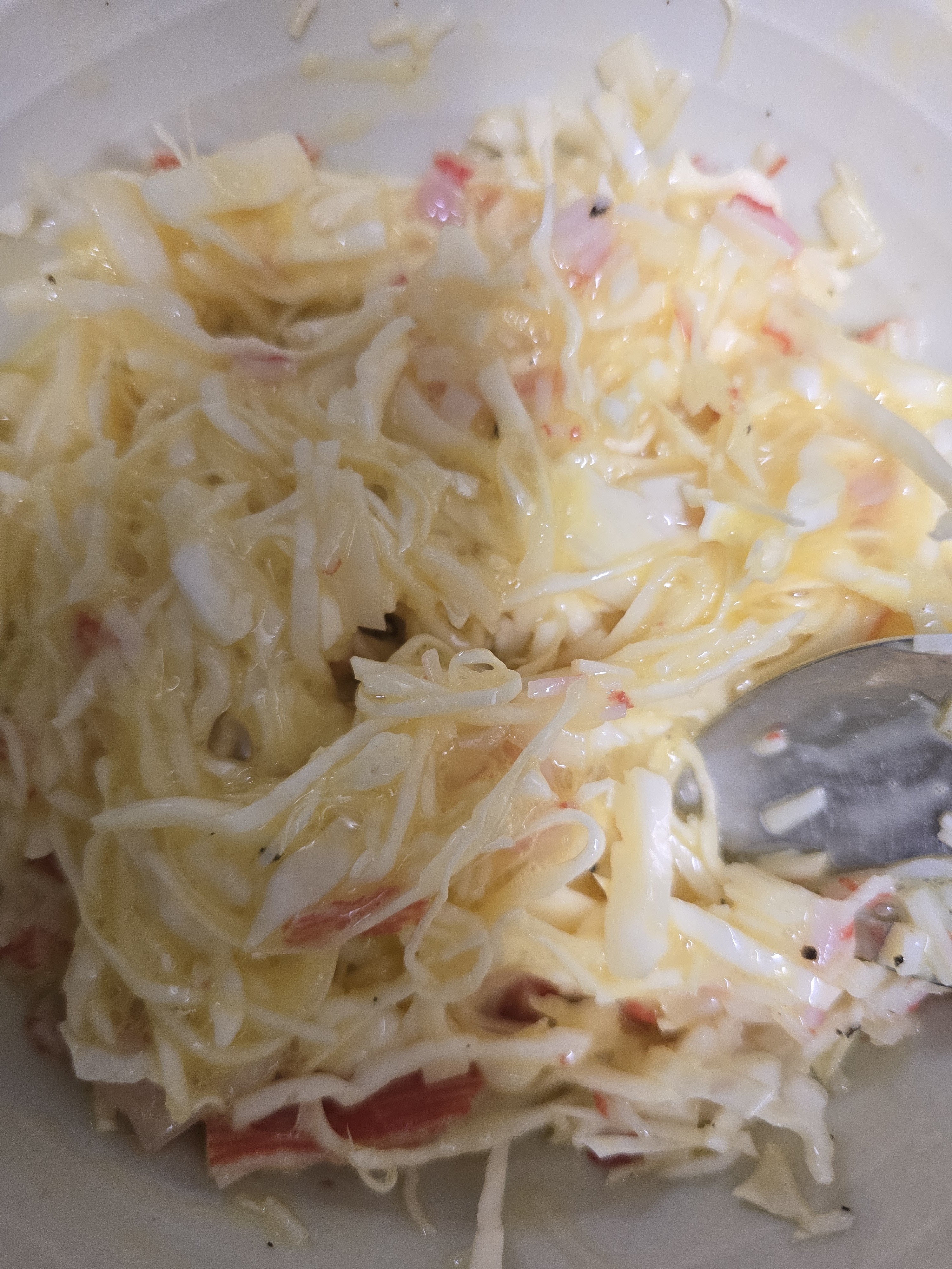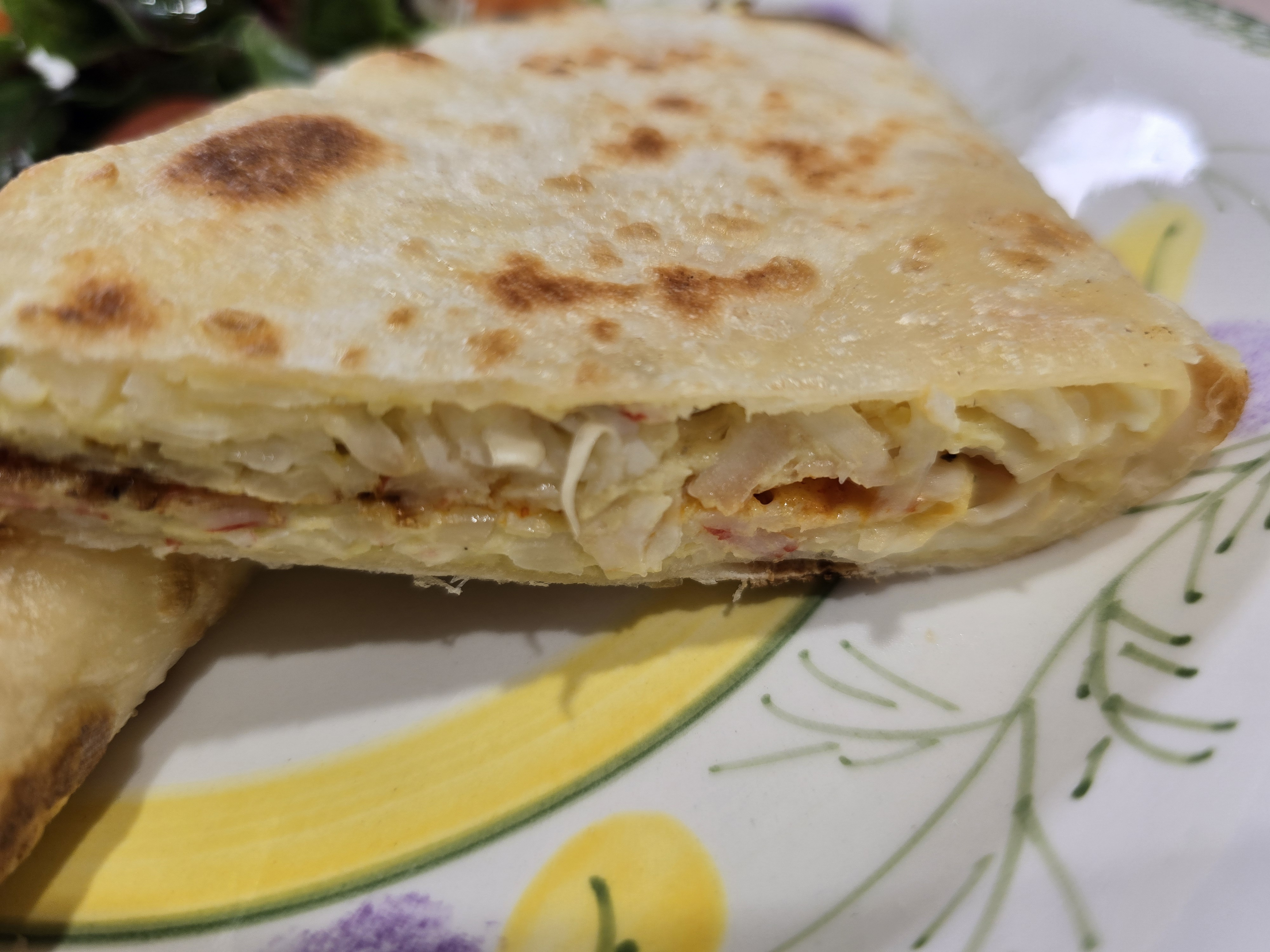 다이어트식단으로 리코타치즈샐러드와 함께 먹으려고 만들어본 양배추 크래미 또띠아
