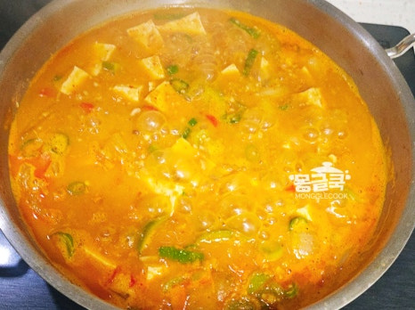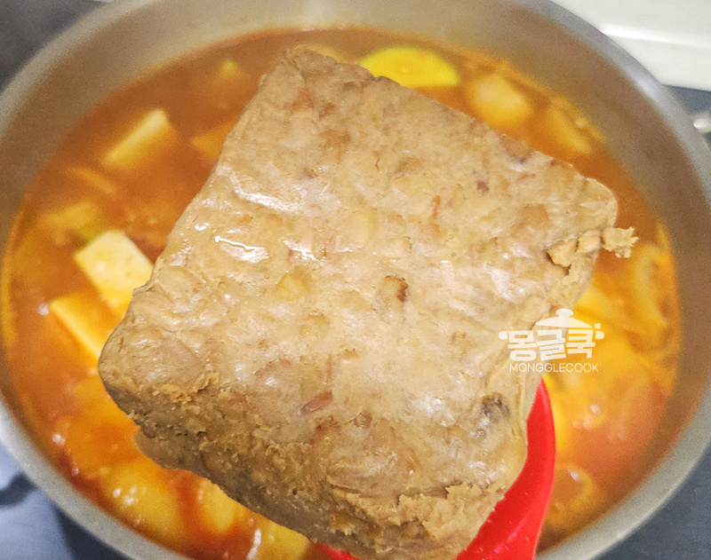 채소가 어느 정도 익으면 준비한 청국장 160g을 넣고 잘 풀어주세요.