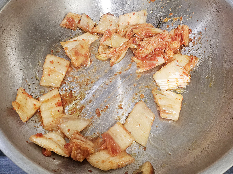 잘 익은 김치 100g을 넣어 1~2분 정도 달달 볶아주세요.