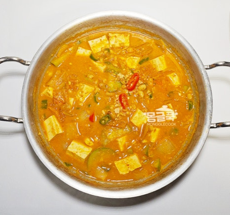 두부를 일찍 넣을수록 간이 잘 배어 더 맛있어요.