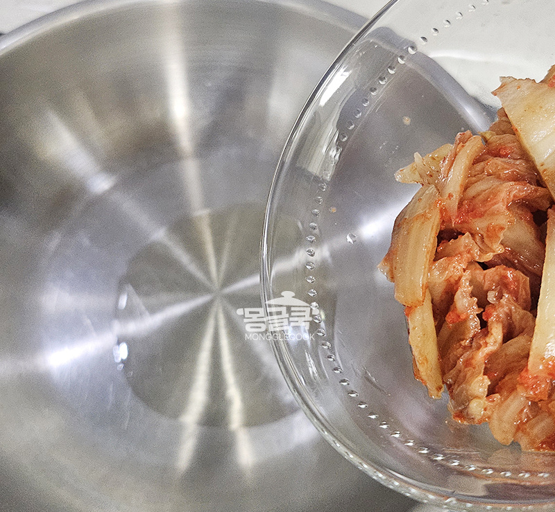 김치는 한 입 크기로 썰어 준비해 주세요.