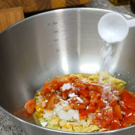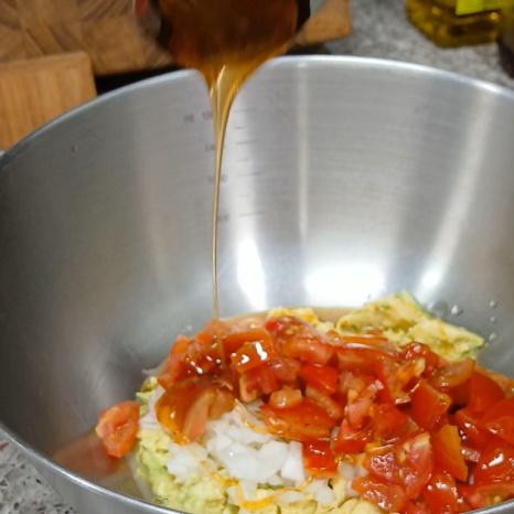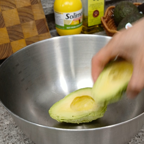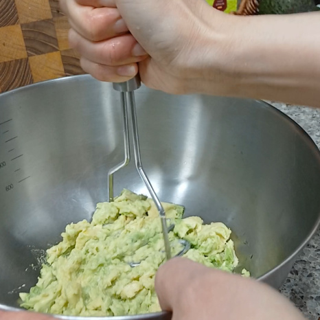 껍질과 씨를 제거한 아보카도를 볼에 담고 마구 으깨주세요