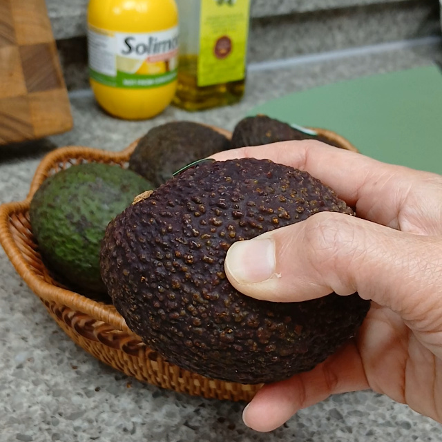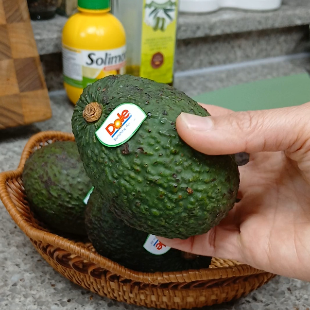 이렇게 전체적으로 진한 초록빛을 띄고 만졌을 때 단단한 것은 아직 후숙이 덜 된 아보카도예요