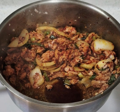 ✔️스팸을 잘게 부수면 건더기와 함께 듬뿍 떠서 밥에 비벼 먹기 좋아요.
