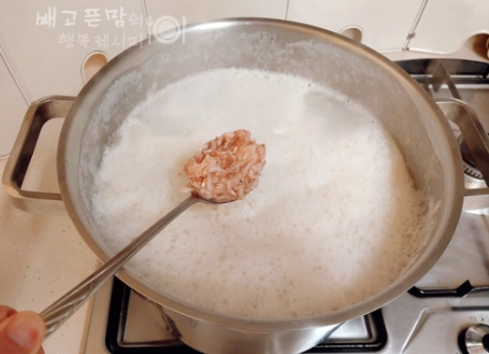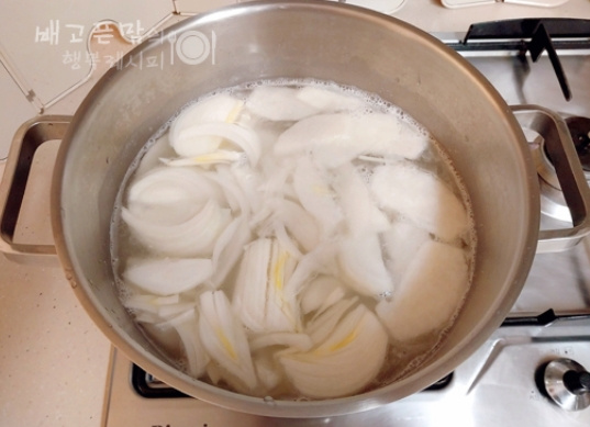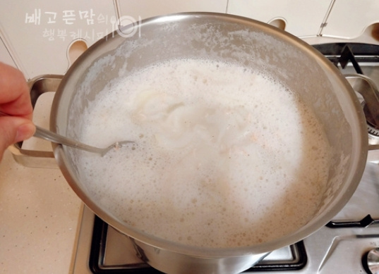그리고 냄비에 넣고 가스불에 올려 끓여 줍니다.