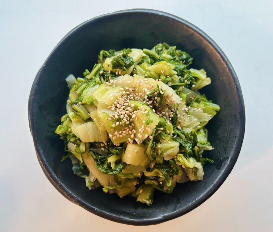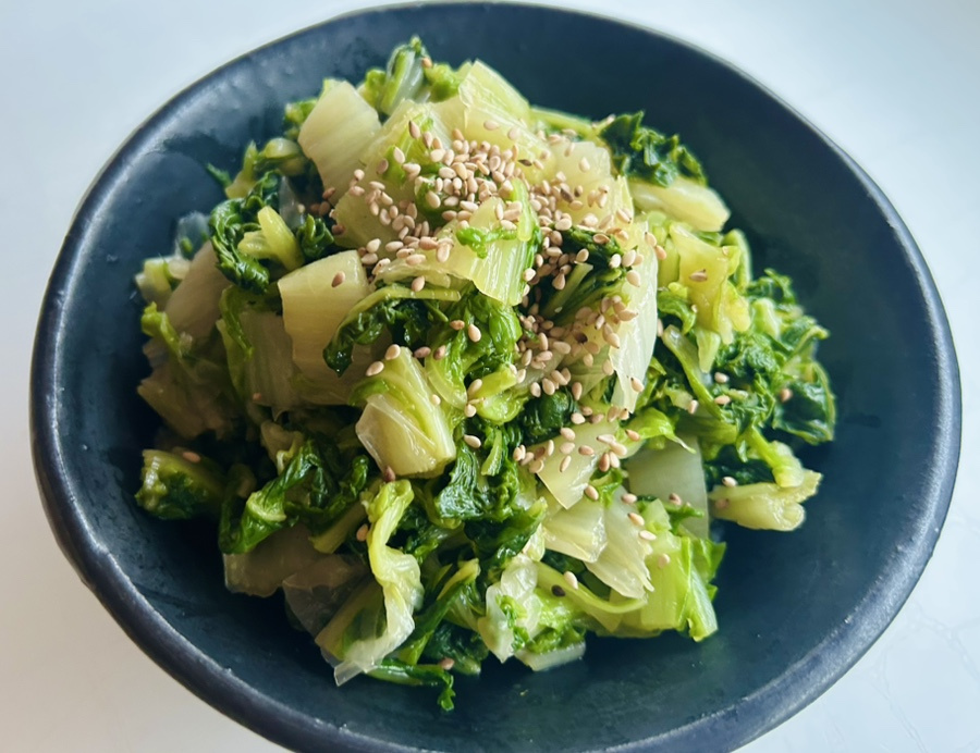 고소하고 달큰하고 아삭한 배추나물은 김장철에 남은 배추잎으로 만들기 간편하고 겉잎을 사용하면 알뜰하게 배추를 활용할 수 있어서 좋은 요리예요.