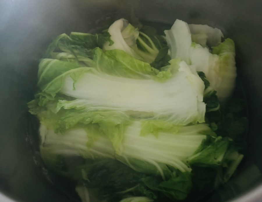 배추 겉잎을 이용하면 초록잎이 많아 영양소가 많고 배추 노란 속잎을 사용하면 부드러우면서도 달큰한 맛이 더 좋아요.