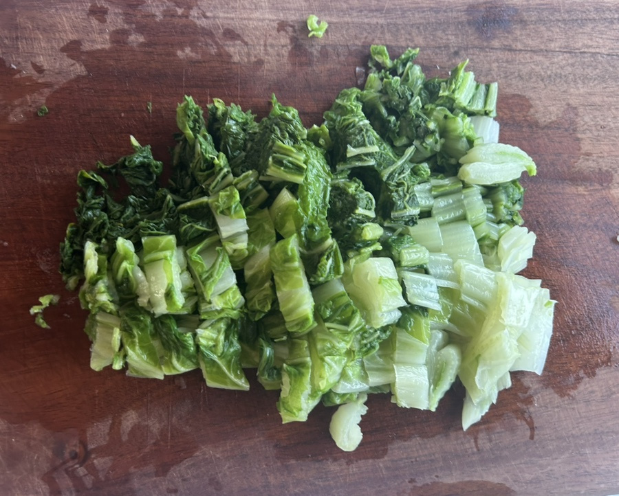 배추나물은 배추잎을 데쳐서 먹기 좋게 썰어 놓은 다음 기본적인 나물 양념 국간장, 액젓, 참기름으로 맛을 내요.