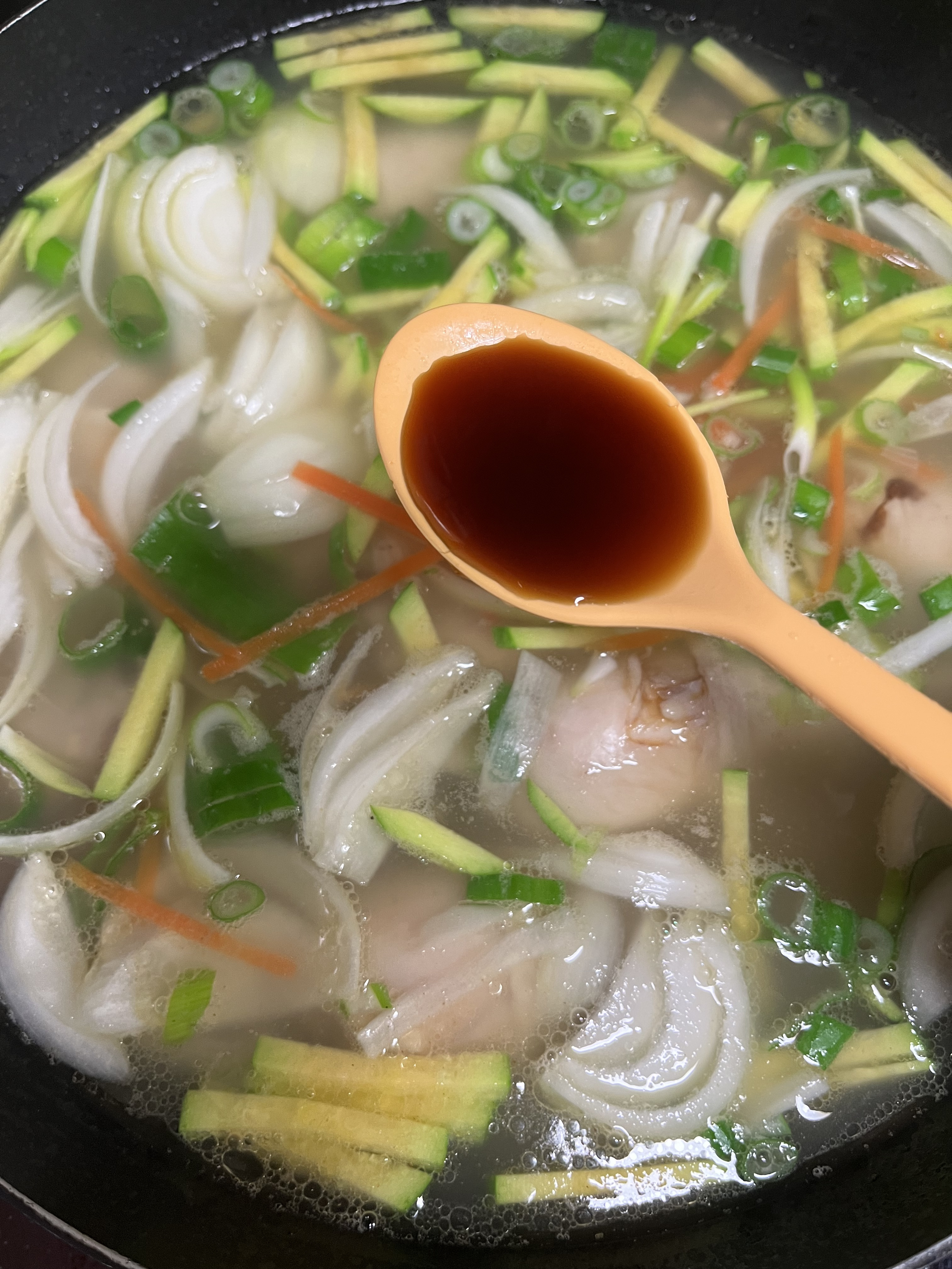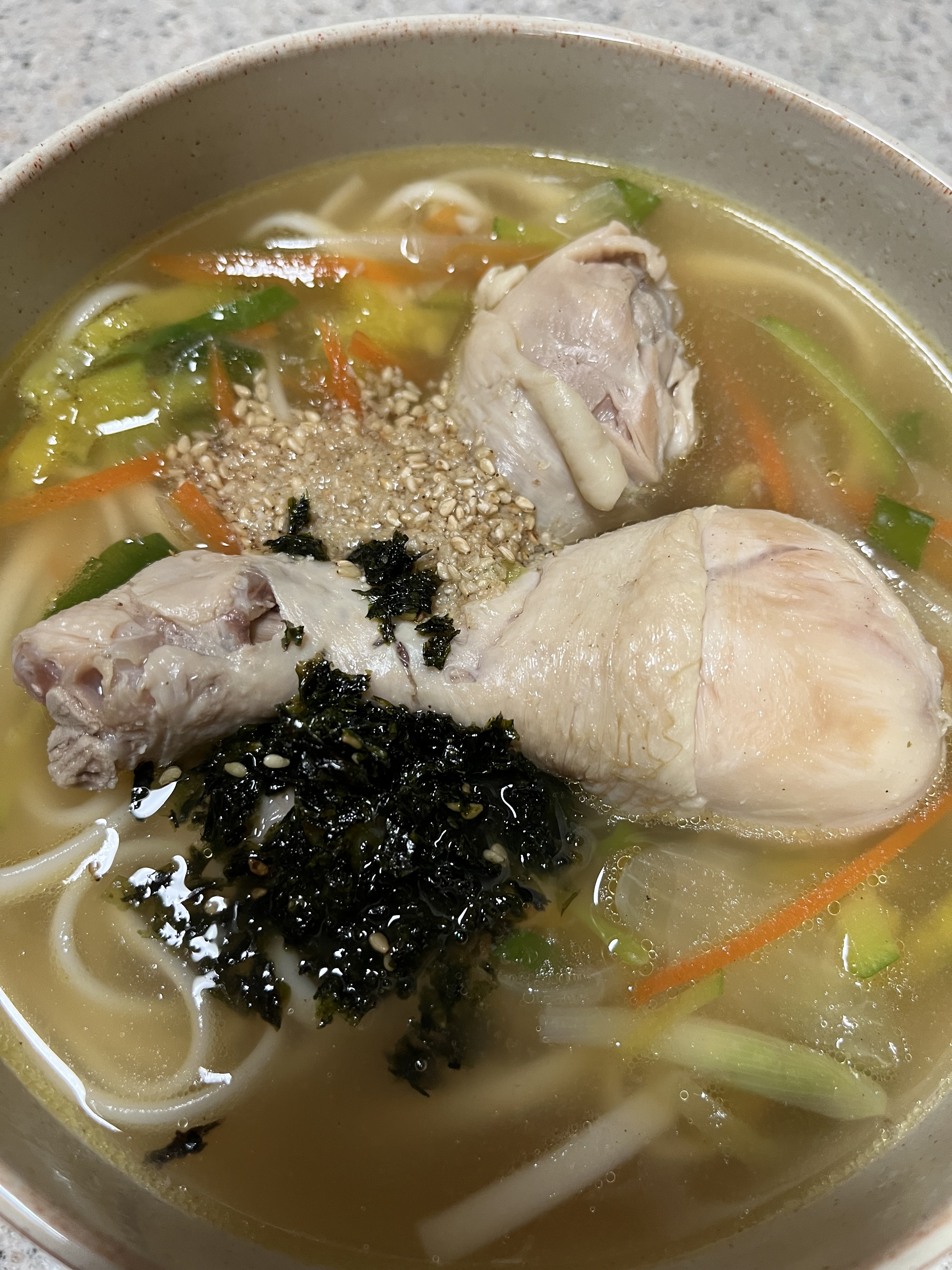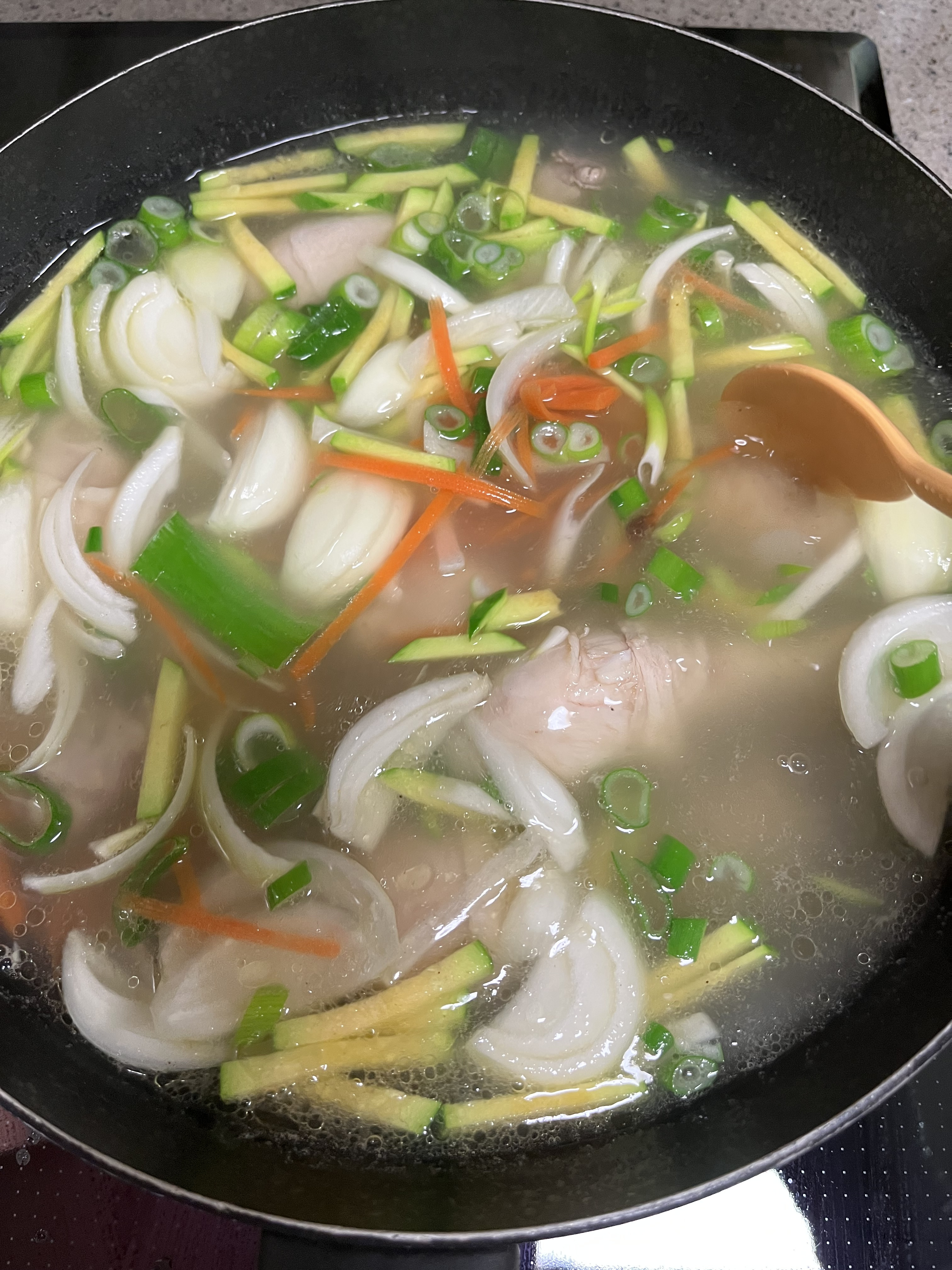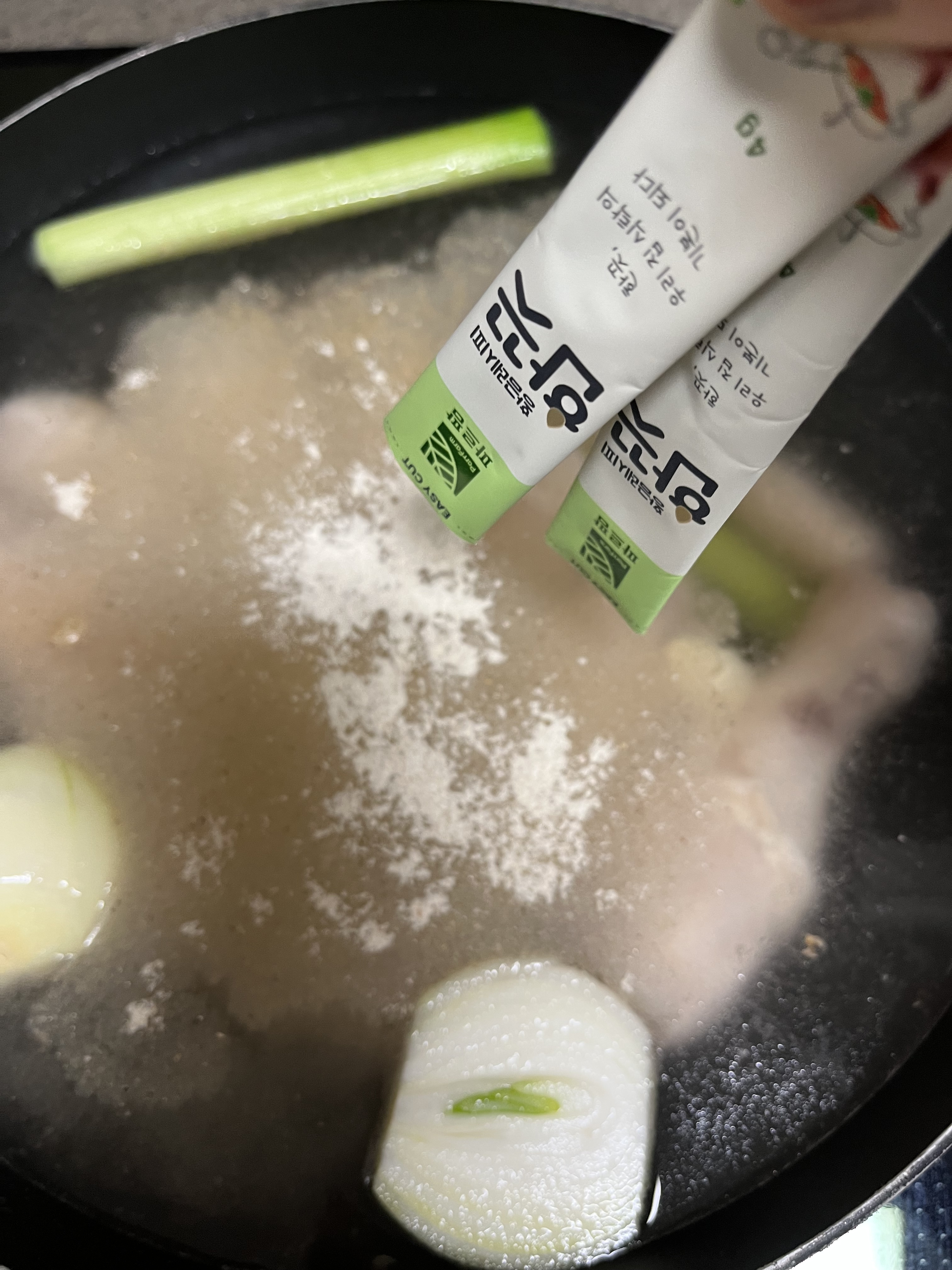 닭다리는 끓는물에 끓여 불순물을 제거 후 사용하면 국물이 깔끔하고 마른팬에 대파와 함께 구워주면 국물이 진해요.