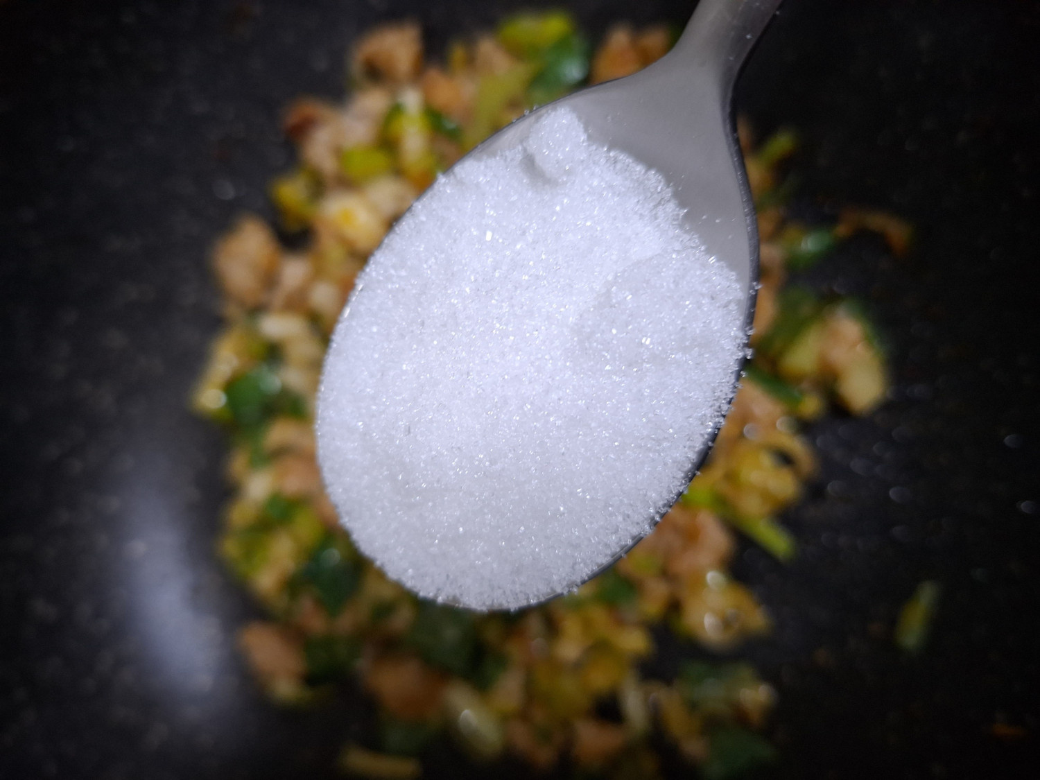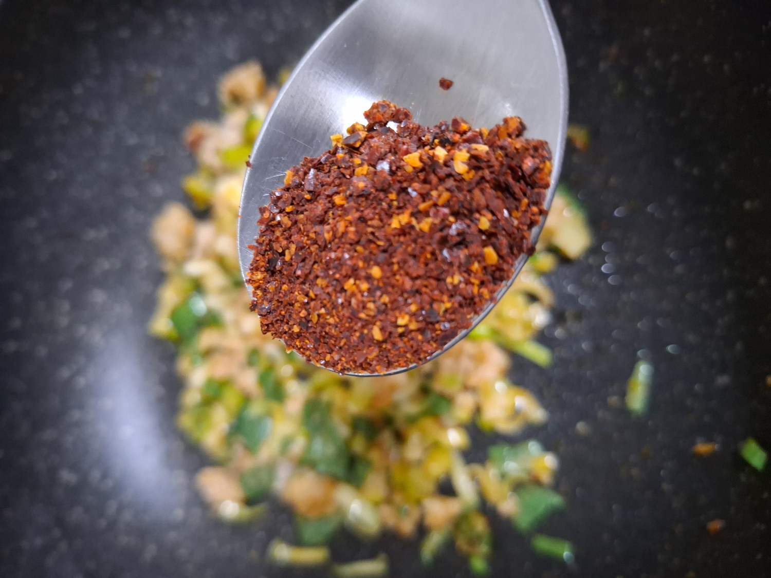 1분 후에 고춧가루 1/2숟갈, 설탕 1숟갈