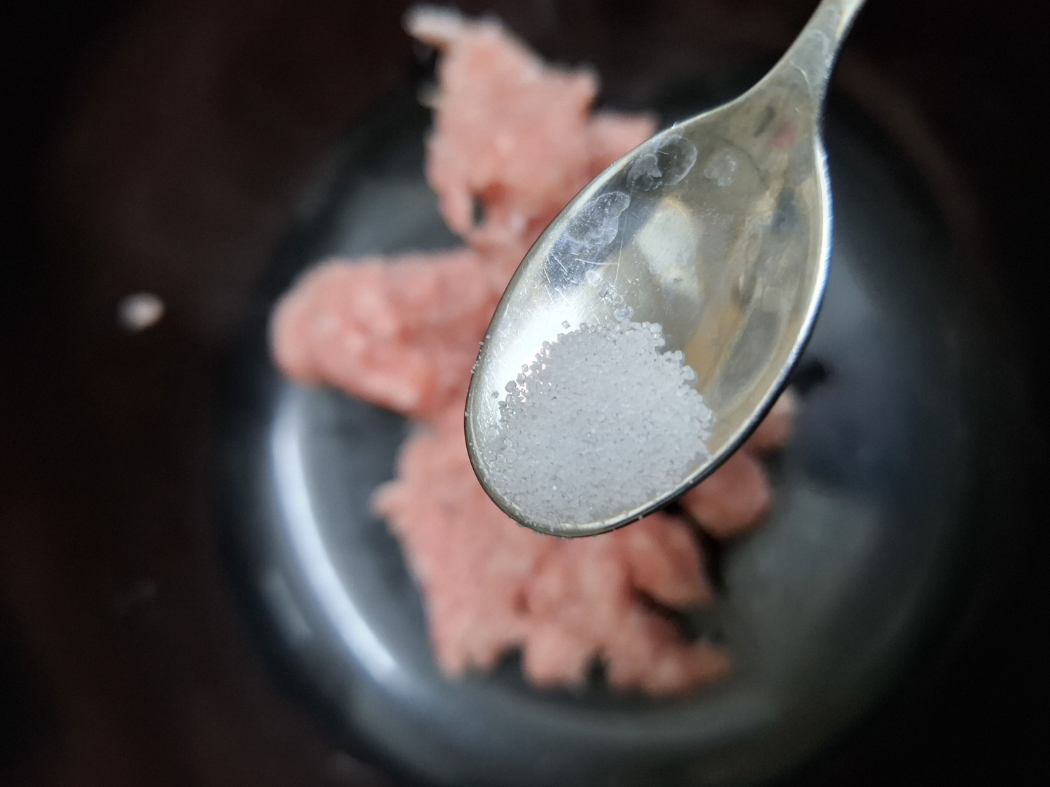 다진돼지고기는 맛소금과 후추를 각 한꼬집씩