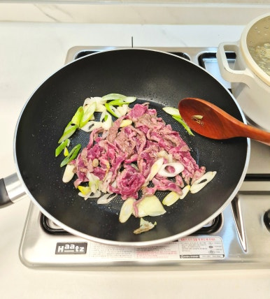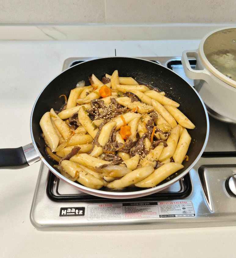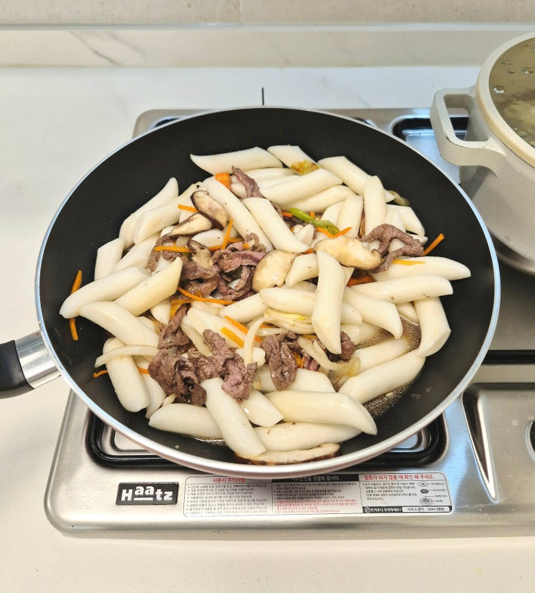 저는 궁중떡볶이 고기로 한우 잡채용 소고기를 사용했습니다~