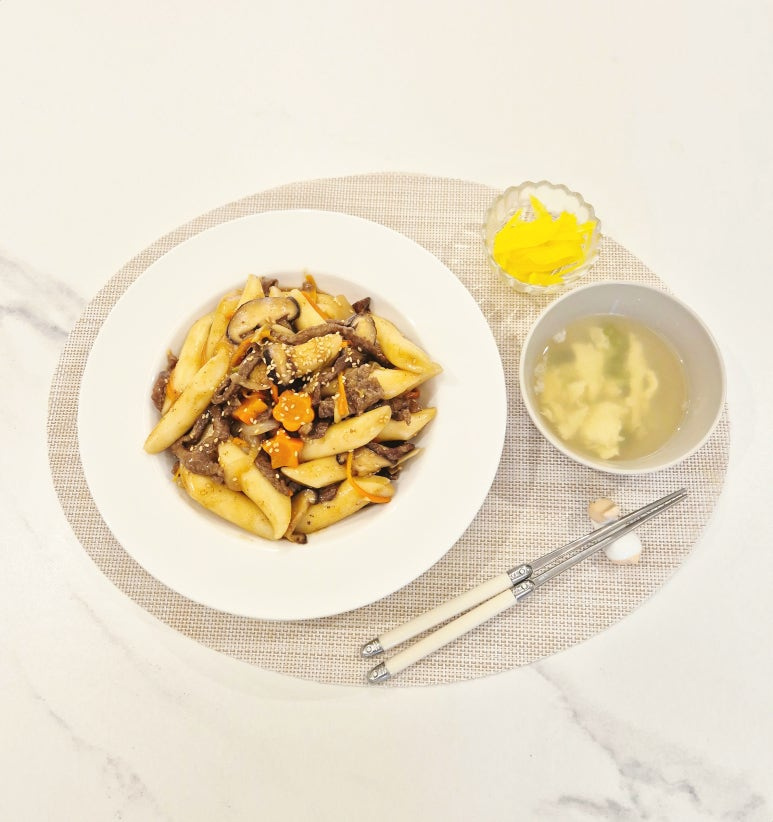 궁중떡볶이를 먹다보니 불고기맛도 나고 야채도 듬뿍 들어가있어서 풍미가 있네요!!