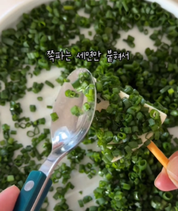 쪽파수저로 꾹꾹 눌러 붙여주세요.