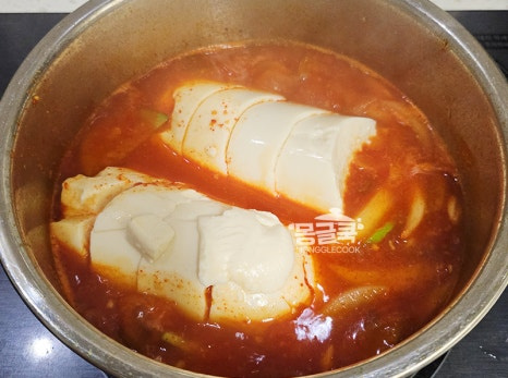 순두부는 봉지를 뜯어 미리 덜어두거나 나중에 숟가락으로 크게 떠 넣어도 좋아요.