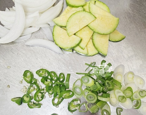 양파는 채 썰고, 애호박은 나박하게 썰어 준비해 주세요.